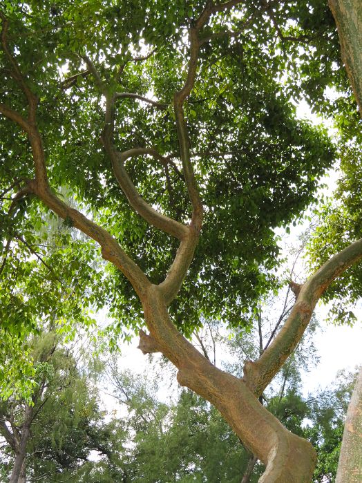 100 cm; su copa es irregular y con corteza rojiza. Las hojas son compuestas,